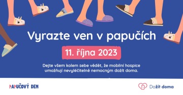Ve středu 11. 10. 2023 je Papučový den, kdy si lidé v Česku berou všude s sebou papuče jako symbol domova, aby tak podpořili domácí hospicovou péči a dávají o tom vědět třeba na sociálních sítích. Vyfoťte se v papučích i vy :-).